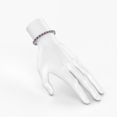 This elegant and timeless white gold tennis bracelet can easily be combined with many different styles of fashion. The Karin 3.5 mm tennis bracelet is pave set with stunning pink sapphire total 3.5 mm, which are set with great care so light reflects perfectly. Because your classic tennis bracelet is handmade, extra care is taken in finishing the tiniest details to perfection. Did you know, the tennis bracelet is named after Chris Evert, the tennis player? She lost her tennis bracelet during the US Open of 1987 and the match was stopped to retrieve her precious diamond line tennis bracelet. The tennis bracelet is called tennis bracelet ever since and many celebrities such as Serena Williams and Katy Perry have been spotted wearing them. Due to its comfort and elegance the tennis bracelet continues to be a popular piece of jewelry. A customized classic elegant tennis bracelet is the perfect gift! New exquisite designs are added daily by our team of passionate goldsmiths. And each design can be customized. Simply customize the precious metals and the color of gemstones which will be used, for example. This makes your design of the classic Karin 3.5 mm tennis bracelet truly unique!Our team of talented, passionate designers add new tennis bracelet designs to our online collection daily. Our objective in doing so, is to be able to offer you a wide variety of jewels. Please feel free to request a quote if you have specific wishes for your tennis bracelet. We guarantee to make you an offer you can't refuse.Because we design and deliver our own tennis bracelets, we can offer you a tennis bracelet at a price you won't find anywhere else. A tennis bracelet is made to order, which helps prevent excess supplies, so we can make you a great price offer. We understand it feels risky, buying your tennis bracelet online, but we will gladly assist in the designing process, taking your budget into consideration.To make it easier for you, we offer a 30 day return policy. Check our terms and conditions.