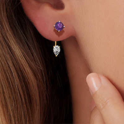 How would you describe your style? Are you looking for something slightly different? These modern special white gold drop earrings are unique and created by our expert goldsmiths. These modern drop earrings are set with amethyst. Each of the amethysten is carefully selected, because we believe your drop earrings should be adorned with nothing but the most exquisite gemstones. Wouldn't you agree? The Kate RND-PER made just for you, with great attention to detail and design.. The best part of these special drop earrings is that you can customize it to your own liking. Your style, your choice, your drop earrings. On top of that, your modern white gold drop earrings will be made by hand with eco-friendly materials! Please feel free to easily customize the drop earrings, using our online tool.After receiving your order, our goldsmiths will passionately start the creative process of making your drop earrings in our own studio. Because we don't have a big stockpile, these costs will not be passed on to you. Our pricing is proof of that! We offer top quality jewels at lowest price, guaranteed. To make it easier for you, we offer a 30 day return policy. Check our terms and conditions.