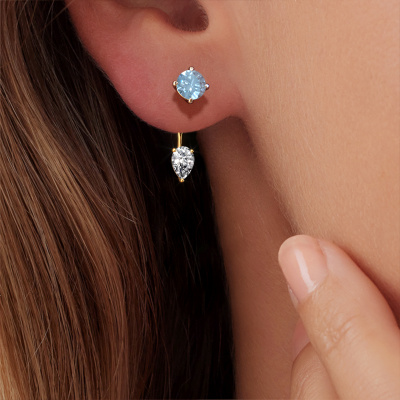 How would you describe your style? Are you looking for something slightly different? These modern special white gold drop earrings are unique and created by our expert goldsmiths. These modern drop earrings are set with blue lab grown diamond. Each of the blue lab grown diamonds is carefully selected, because we believe your drop earrings should be adorned with nothing but the most exquisite gemstones. Wouldn't you agree? The Kate RND-PER made just for you, with great attention to detail and design.. The best part of these special drop earrings is that you can customize it to your own liking. Your style, your choice, your drop earrings. On top of that, your modern white gold drop earrings will be made by hand with eco-friendly materials! Please feel free to easily customize the drop earrings, using our online tool.After receiving your order, our goldsmiths will passionately start the creative process of making your drop earrings in our own studio. Because we don't have a big stockpile, these costs will not be passed on to you. Our pricing is proof of that! We offer top quality jewels at lowest price, guaranteed. To make it easier for you, we offer a 30 day return policy. Check our terms and conditions.