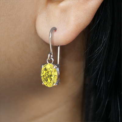 This is our set of fashionable Laurie OVL 1 drop earrings. In this example the drop earrings are set with oval yellow lab grown diamond. Each of our yellow lab grown diamonds gemstones is carefully selected and positioned in your drop earrings with great precision so light hits the yellow lab grown diamond from every angle. We believe these charming platinum drop earrings look best set with colored gemstones. But that is entirely up to you. The best part of these charming drop earrings is that you can customize it to your own liking. Your style, your choice, your drop earrings. On top of that, your fashionable platinum drop earrings will be made by hand with eco-friendly materials! Please feel free to easily customize the drop earrings, using our online tool.By using a combination of the latest modern techniques, combined with ancient crafting, we can make all our drop earrings in our own studio. Each jewel is made to order. This is advantageous because we can offer you a price you won't find anywhere else.To make it easier for you, we offer a 30 day return policy. Check our terms and conditions.