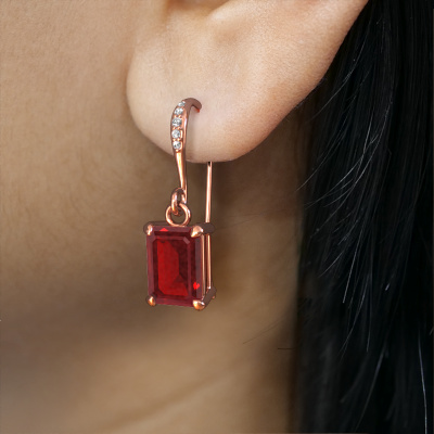 What could possibly be more stunning than a pair of stunning drop earrings? These rose gold Laurie EME 2 drop earrings are a true eye-catcher. These solitaire drop earrings are set with emerald cut ruby. We collaborate with the best suppliers of gemstones and they select our gemstones with great care. Your drop earrings are made by hand in our own artisan studio by our expert goldsmiths. As soon as you finished designing your classic drop earrings with our online tool, our goldsmiths will start their creative process of making your drop earrings. This will be done with passion and care, according ancient crafting. On top of that, our jewels are made of eco-friendly materials. If you want specific changes made to your Laurie EME 2 drop earrings, that are unavailable in our online tool, please feel free to contact our expert designers.After receiving your order, our goldsmiths will start the creative process of making your Laurie EME 2 drop earrings. We don't keep stock. This is advantageous because these costs will not be passed on to you. Therefore, we can offer jewelry at exceptionally low prices.To make it easier for you, we offer a 30 day return policy. Check our terms and conditions.