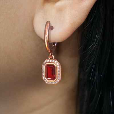 If you are looking for classic and personal drop earrings, then these will fit you perfectly. You have the option to add your birthstones to these drop earrings. Each month has its own birthstone. You may use your own birthstone gemstone or that of your children. A priceless gift, even if it is for yourself. Our expert jeweler will set the selected stones in your drop earrings with utter precision, so light reflects evenly from every angle. Here, 6x4 mm emerald cut ruby gemstones were used to adorn these rose gold special Noud EME drop earrings. The Noud EME earrings are passionately made by one of our master goldsmiths.. The best part of these special drop earrings is that you can customize it to your own liking. Your style, your choice, your drop earrings. On top of that, your classic rose gold drop earrings will be made by hand with eco-friendly materials! Please feel free to easily customize the drop earrings, using our online tool. By using our modern techniques, we can design and customize the finest quality jewels with the utmost care for you. Our drop earrings are always priced 30 percent lower than other jewelers. We make drop earrings to order so we don't have to maintain a large stock. If you have a certain budget, we are more than happy to advice you accordingly.To make it easier for you, we offer a 30 day return policy. Check our terms and conditions.