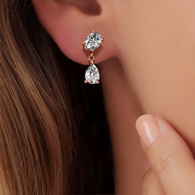 The graceful rose gold Toi et Moi OVL-PER earrings are set with stunning oval diamonds. These earrings are ideally combined with colored gemstones, but if you prefer other gemstones, feel free to choose from our collection. Our expert jewelers would love to create handmade earrings for you in our own crafting studio. We use a unique concept, a perfect combination of ancient craftsmanship and the latest modern techniques. This enables us to design your earrings to perfection. The earrings, as shown here, are set with diamond 2.70 crt. The best part of these graceful earrings is that you can customize it to your own liking. Your style, your choice, your earrings. On top of that, your exclusive rose gold earrings will be made by hand with eco-friendly materials! Please feel free to easily customize the earrings, using our online tool.De Toi et Moi OVL-PER earrings are made to embellish your ears. Each jewel is lovingly made by hand by our goldsmiths.After receiving your order, our goldsmiths will passionately start the creative process of making your earrings in our own studio. Because we don't have a big stockpile, these costs will not be passed on to you. Our pricing is proof of that! We offer top quality jewels at lowest price, guaranteed.To make it easier for you, we offer a 30 day return policy. Check our terms and conditions.