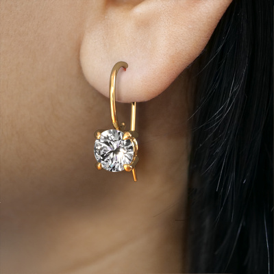 Solitaire drop earrings are modern yet fashionable pieces of jewelry. In solitaire drop earrings, the prong setting is open and only 1 stone is set, which helps reflect light on the gemstone from every angle. Because the diamonds are positioned higher, these modern drop earrings become truly eye-catching. We carefully create each detail of these solitaire drop earrings by hand. Our expert goldsmiths set the diamonds in these gold drop earrings with the utmost precision, so light reflects evenly from every angle. The drop earrings are set with 1.00 crt round diamonds. The Cleo RND earrings are unique pieces of jewelry because they can be customized to your liking.. As soon as you finished designing your modern drop earrings with our online tool, our goldsmiths will start their creative process of making your drop earrings. This will be done with passion and care, according ancient crafting. On top of that, our jewels are made of eco-friendly materials. If you want specific changes made to your Cleo RND drop earrings, that are unavailable in our online tool, please feel free to contact our expert designers. Because we design and deliver our own drop earrings, we can offer you drop earrings at a price you won't find anywhere else. drop earrings are made to order, which helps prevent excess supplies, so we can make you a great price offer. We understand it feels risky, buying your drop earrings online, but we will gladly assist in the designing process, taking your budget into consideration. To make it easier for you, we offer a 30 day return policy. Check our terms and conditions.