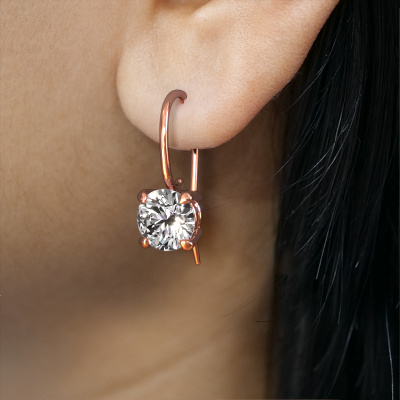 Solitaire drop earrings are modern yet fashionable pieces of jewelry. In solitaire drop earrings, the prong setting is open and only 1 stone is set, which helps reflect light on the gemstone from every angle. Because the diamonds are positioned higher, these modern drop earrings become truly eye-catching. We carefully create each detail of these solitaire drop earrings by hand. Our expert goldsmiths set the diamonds in these rose gold drop earrings with the utmost precision, so light reflects evenly from every angle. The drop earrings are set with 1.00 crt round diamonds. The Cleo RND earrings are unique pieces of jewelry because they can be customized to your liking.. As soon as you finished designing your modern drop earrings with our online tool, our goldsmiths will start their creative process of making your drop earrings. This will be done with passion and care, according ancient crafting. On top of that, our jewels are made of eco-friendly materials. If you want specific changes made to your Cleo RND drop earrings, that are unavailable in our online tool, please feel free to contact our expert designers. Because we design and deliver our own drop earrings, we can offer you drop earrings at a price you won't find anywhere else. drop earrings are made to order, which helps prevent excess supplies, so we can make you a great price offer. We understand it feels risky, buying your drop earrings online, but we will gladly assist in the designing process, taking your budget into consideration. To make it easier for you, we offer a 30 day return policy. Check our terms and conditions.