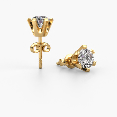 Solitaire stud earrings are classic yet fashionable pieces of jewelry. In solitaire stud earrings, the prong setting is open and only 1 stone is set, which helps reflect light on the gemstone from every angle. Because the diamonds are positioned higher, these classic stud earrings become truly eye-catching. We carefully create each detail of these solitaire stud earrings by hand. Our expert goldsmiths set the diamonds in these gold stud earrings with the utmost precision, so light reflects evenly from every angle. The stud earrings are set with 0.40 crt round diamonds. The Shana earrings are made just for you by our master goldsmith in our own artisan studio.. Our goldsmiths passionately create your customized stud earrings to your liking with the utmost care. The gold set stud earrings, as shown here, can be customized using our online tool. Feel free to ask our jewel designers for assistance if you want changes made which are unavailable in our online tool. We are happy to answer your questions. Are you on a budget? Please feel free to contact us, so we can go discuss your options. We offer our stud earrings at guaranteed best price, because we make them to order. You won't find such a price anywhere else! To make it easier for you, we offer a 30 day return policy. Check our terms and conditions.