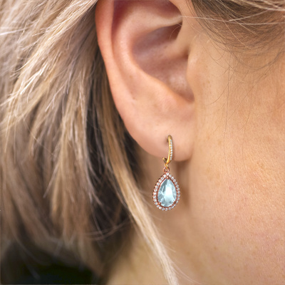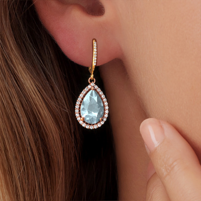 If you are looking for exclusive and personal drop earrings, then these will fit you perfectly. You have the option to add your birthstones to these drop earrings. Each month has its own birthstone. You may use your own birthstone gemstone or that of your children. A priceless gift, even if it is for yourself. Our expert jeweler will set the selected stones in your drop earrings with utter precision, so light reflects evenly from every angle. Here, 12x8 mm pear aquamarine gemstones were used to adorn these rose gold drop Tilly per 4 drop earrings. The Tilly per 4 earrings are passionately made by one of our master goldsmiths.. The best part of these drop drop earrings is that you can customize it to your own liking. Your style, your choice, your drop earrings. On top of that, your exclusive rose gold drop earrings will be made by hand with eco-friendly materials! Please feel free to easily customize the drop earrings, using our online tool. By using our modern techniques, we can design and customize the finest quality jewels with the utmost care for you. Our drop earrings are always priced 30 percent lower than other jewelers. We make drop earrings to order so we don't have to maintain a large stock. If you have a certain budget, we are more than happy to advice you accordingly.To make it easier for you, we offer a 30 day return policy. Check our terms and conditions.