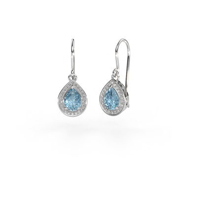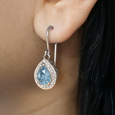 This is our set of trendy Beverlee 1 drop earrings. In this example the drop earrings are set with pear blue lab grown diamond. Each of our blue lab grown diamonds gemstones is carefully selected and positioned in your drop earrings with great precision so light hits the blue lab grown diamond from every angle. We believe these drop platinum drop earrings look best set with colored gemstones. But that is entirely up to you. Our goldsmiths passionately create your customized drop earrings to your liking with the utmost care. The platinum set drop earrings, as shown here, can be customized using our online tool. Feel free to ask our jewel designers for assistance if you want changes made which are unavailable in our online tool. We are happy to answer your questions.After receiving your order, our goldsmiths will passionately start the creative process of making your drop earrings in our own studio. Because we don't have a big stockpile, these costs will not be passed on to you. Our pricing is proof of that! We offer top quality jewels at lowest price, guaranteed.To make it easier for you, we offer a 30 day return policy. Check our terms and conditions.