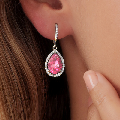 If you are looking for exclusive and personal drop earrings, then these will fit you perfectly. You have the option to add your birthstones to these drop earrings. Each month has its own birthstone. You may use your own birthstone gemstone or that of your children. A priceless gift, even if it is for yourself. Our expert jeweler will set the selected stones in your drop earrings with utter precision, so light reflects evenly from every angle. Here, 12x8 mm pear pink sapphire gemstones were used to adorn these platinum drop Tilly per 4 drop earrings. The Tilly per 4 earrings are passionately made by one of our master goldsmiths..