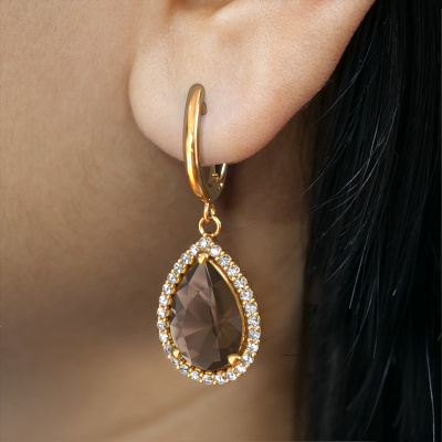 With a pair of exclusive drop earrings, every woman truly stands out. At DiamondsByMe, we create exclusive and extraordinary jewelry and we make use of the finest precious metals and gemstones. These exclusive gold drop earrings are a true work of art! Each tiny detail has been made with patience and passion by our expert jeweler. This requires a keen eye and skillful hand in order for the ring to be carefully created to perfection. And this is exactly what our expert jewelers strive for, perfection! The exquisite smokey quartz are set in a way making them seem to shine even brighter. This gives the drop earrings an extra glamorous look. Shown above are our gold Tilly per 3 drop earrings, set with pear smokey quartz. The Tilly per 3 earrings are made just for you by our master goldsmith in our own artisan studio.. The best part of these drop drop earrings is that you can customize it to your own liking. Your style, your choice, your drop earrings. On top of that, your exclusive gold drop earrings will be made by hand with eco-friendly materials! Please feel free to easily customize the drop earrings, using our online tool. Because we design and deliver our own drop earrings, we can offer you drop earrings at a price you won't find anywhere else. drop earrings are made to order, which helps prevent excess supplies, so we can make you a great price offer. We understand it feels risky, buying your drop earrings online, but we will gladly assist in the designing process, taking your budget into consideration. To make it easier for you, we offer a 30 day return policy. Check our terms and conditions.