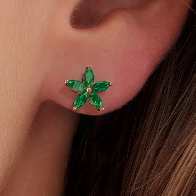 How would you describe your style? Are you looking for something slightly different? These unique cluster rose gold stud earrings are unique and created by our expert goldsmiths. These unique stud earrings are set with emerald. Each of the emeralds is carefully selected, because we believe your stud earrings should be adorned with nothing but the most exquisite gemstones. Wouldn't you agree? The Sylvana earrings are made just for you by our master goldsmith in our own artisan studio.. Our goldsmiths passionately create your customized stud earrings to your liking with the utmost care. The rose gold set stud earrings, as shown here, can be customized using our online tool. Feel free to ask our jewel designers for assistance if you want changes made which are unavailable in our online tool. We are happy to answer your questions.Are you on a budget? Please feel free to contact us, so we can go discuss your options. We offer our stud earrings at guaranteed best price, because we make them to order. You won't find such a price anywhere else! To make it easier for you, we offer a 30 day return policy. Check our terms and conditions.