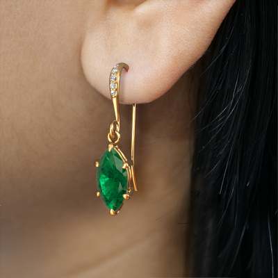 Each modern woman should own her own pair of fashionable drop earrings. Buy them from DiamondsByMe. In order to create our exquisite jewels, our expert goldsmiths use the best precious metals and the finest gemstones. Take this fashionable gold emerald set of Laurie MRQ 2 drop earrings, for example. Each emerald is selected with great care, because we believe your drop earrings should only be adorned with the finest emeralds gemstones. Our artisan goldsmiths create your drop earrings in our own crafting studio and they set the emerald in the drop earrings with the utmost care. Subsequently, they are crafted and polished until it is evident: the perfect drop earrings are done! The Laurie MRQ 2 earrings are passionately made by one of our master goldsmiths.. Customized fashionable affordable drop earrings are the perfect gift! New exquisite designs are added daily by our team of passionate goldsmiths. And each design can be customized. Simply customize the precious metals and the color of gemstones which will be used, for example. This makes your design of the fashionable Laurie MRQ 2 drop earrings truly unique! After receiving your order, our goldsmiths will passionately start the creative process of making your drop earrings in our own studio. Because we don't have a big stockpile, these costs will not be passed on to you. Our pricing is proof of that! We offer top quality jewels at lowest price, guaranteed. To make it easier for you, we offer a 30 day return policy. Check our terms and conditions.