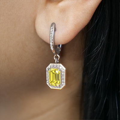 With a pair of exclusive drop earrings, every woman truly stands out. At DiamondsByMe, we create exclusive and extraordinary jewelry and we make use of the finest precious metals and gemstones. These exclusive platinum drop earrings are a true work of art! Each tiny detail has been made with patience and passion by our expert jeweler. This requires a keen eye and skillful hand in order for the ring to be carefully created to perfection. And this is exactly what our expert jewelers strive for, perfection! The exquisite yellow lab grown diamonds are set in a way making them seem to shine even brighter. This gives the drop earrings an extra glamorous look. Shown above are our platinum Dodie 2 drop earrings, set with emerald cut yellow lab grown diamond. The Dodie 2 earrings are made just for you by our master goldsmith in our own artisan studio.. How do you like these exclusive platinum drop earrings? Simply customize this Dodie 2 drop earrings, using our online tool. Subsequently, your personal halo Dodie 2 drop earrings will be made by hand by our goldsmiths. Precious metals and gemstones can be customized to your liking. Do you have specific preferences which are unavailable in our online tool? Please feel free to contact us. We will customize your personal exclusive drop earrings to your liking. Are you on a budget? Please feel free to contact us, so we can go discuss your options. We offer our drop earrings at guaranteed best price, because we make them to order. You won't find such a price anywhere else! To make it easier for you, we offer a 30 day return policy. Check our terms and conditions.