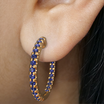 This set of charming Jackie 15 mm B hoop earrings are beautiful small hoop earrings to finish off your look. Our expert jewelers combine the latest techniques with ancient craftsmanship. They make your hoop earrings by hand in our own crafting studio. The sapphire of your choosing are set in your hoop earrings with the utmost precision, so light reflects evenly from every angle. In the end you get stunning, unique hoop earrings that match your own style perfectly! Take these gold hoop earrings set with sapphire 2 mm, for example. As soon as you finished designing your exclusive hoop earrings with our online tool, our goldsmiths will start their creative process of making your hoop earrings. This will be done with passion and care, according ancient crafting. On top of that, our jewels are made of eco-friendly materials. If you want specific changes made to your Jackie 15 mm B hoop earrings, that are unavailable in our online tool, please feel free to contact our expert designers.The Jackie 15 mm B earrings are unique pieces of jewelry because they can be customized to your liking.After receiving your order, our goldsmiths will start the creative process of making your Jackie 15 mm B hoop earrings. We don't keep stock. This is advantageous because these costs will not be passed on to you. Therefore, we can offer jewelry at exceptionally low prices.To make it easier for you, we offer a 30 day return policy. Check our terms and conditions.