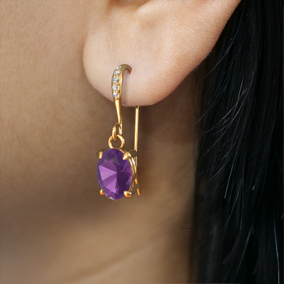 What could possibly be more stunning than a pair of stunning drop earrings? These gold Laurie OVL 2 drop earrings are a true eye-catcher. These charming drop earrings are set with oval amethyst. We collaborate with the best suppliers of gemstones and they select our gemstones with great care. Your drop earrings are made by hand in our own artisan studio by our expert goldsmiths. Customized chic charming drop earrings are the perfect gift! New exquisite designs are added daily by our team of passionate goldsmiths. And each design can be customized. Simply customize the precious metals and the color of gemstones which will be used, for example. This makes your design of the chic Laurie OVL 2 drop earrings truly unique!After receiving your order, our goldsmiths will passionately start the creative process of making your drop earrings in our own studio. Because we don't have a big stockpile, these costs will not be passed on to you. Our pricing is proof of that! We offer top quality jewels at lowest price, guaranteed.To make it easier for you, we offer a 30 day return policy. Check our terms and conditions.