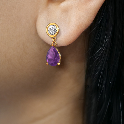 What could possibly be more stunning than a pair of stunning drop earrings? These gold Lacey drop earrings are a true eye-catcher. These graceful drop earrings are set with pear amethyst. We collaborate with the best suppliers of gemstones and they select our gemstones with great care. Your drop earrings are made by hand in our own artisan studio by our expert goldsmiths. Customized fantasy graceful drop earrings are the perfect gift! New exquisite designs are added daily by our team of passionate goldsmiths. And each design can be customized. Simply customize the precious metals and the color of gemstones which will be used, for example. This makes your design of the fantasy Lacey drop earrings truly unique!After receiving your order, our goldsmiths will passionately start the creative process of making your drop earrings in our own studio. Because we don't have a big stockpile, these costs will not be passed on to you. Our pricing is proof of that! We offer top quality jewels at lowest price, guaranteed.To make it easier for you, we offer a 30 day return policy. Check our terms and conditions.