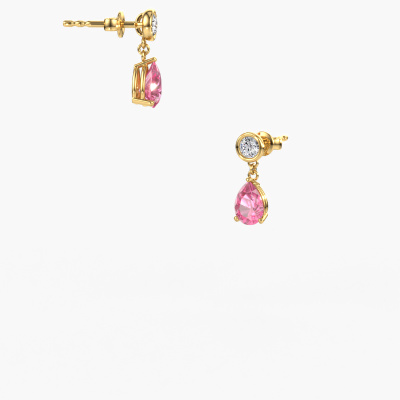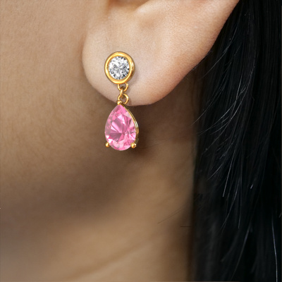 What could possibly be more stunning than a pair of stunning drop earrings? These gold Lacey drop earrings are a true eye-catcher. These graceful drop earrings are set with pear pink sapphire. We collaborate with the best suppliers of gemstones and