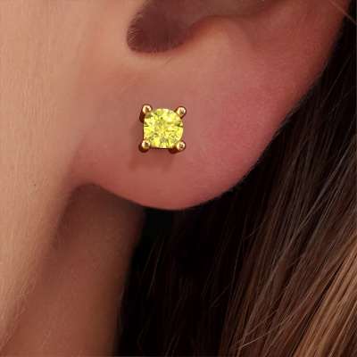 Solitaire stud earrings are both a traditional and a trendy piece of jewelry. Solitaire stud earrings have an open prong setting, therefore, light reflects beautifully on the gemstones. Because the yellow lab grown diamonds are set high, these traditional stud earrings are a stunning eye-catcher. We will create your solitaire stud earrings by hand with the utmost care in our DiamondsByMe studio. For maximum shine, our goldsmith sets the yellow lab grown diamonds in the gold stud earrings with great care. These solitaire stud earrings are set with round yellow lab grown diamond of 5 mm. De Eline earrings are unique pieces of jewelry because they can be customized to your liking.. The best part of these solitaire stud earrings is that you can customize it to your own liking. Your style, your choice, your stud earrings. On top of that, your traditional gold stud earrings will be made by hand with eco-friendly materials! Please feel free to easily customize the stud earrings, using our online tool.Because we design and deliver our own stud earrings, we can offer you stud earrings at a price you won't find anywhere else. stud earrings are made to order, which helps prevent excess supplies, so we can make you a great price offer. We understand it feels risky, buying your stud earrings online, but we will gladly assist in the designing process, taking your budget into consideration. To make it easier for you, we offer a 30 day return policy. Check our terms and conditions.