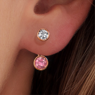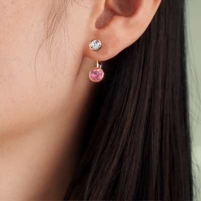 We believe this set of hanging Halle earrings, set with exquisite round tourmaline pink, look best when set with diamonds. But the best part is that you get to choose your own birthstones to customize the design Halle rose gold earrings to your liking. In the example shown above they are set with tourmaline pink 6 mm. Each gemstone is selected with great care and the utmost precision for a maximum shine. Because we design and deliver our own earrings, we can offer you earrings at a price you won't find anywhere else. earrings are made to order, which helps prevent excess supplies, so we can make you a great price offer. We understand it feels risky, buying your earrings online, but we will gladly assist in the designing process, taking your budget into consideration.To make it easier for you, we offer a 30 day return policy. Check our terms and conditions.