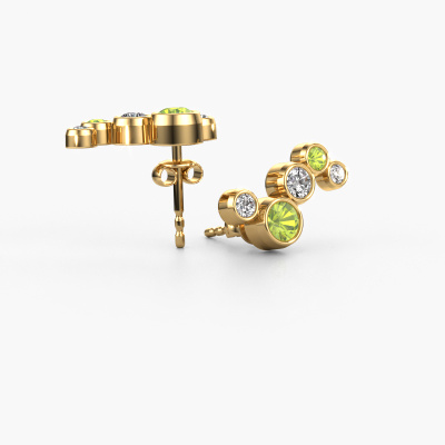 The graceful gold Ryan earrings are set with stunning round peridot. These earrings are ideally combined with colored gemstones, but if you prefer other gemstones, feel free to choose from our collection. Our expert jewelers would love to create handmade earrings for you in our own crafting studio. We use a unique concept, a perfect combination of ancient craftsmanship and the latest modern techniques. This enables us to design your earrings to perfection. The earrings, as shown here, are set with peridot 4 mm. The best part of these graceful earrings is that you can customize it to your own liking. Your style, your choice, your earrings. On top of that, your trendy gold earrings will be made by hand with eco-friendly materials! Please feel free to easily customize the earrings, using our online tool.De Ryan earrings are passionately made by one of our master goldsmiths.By using our modern techniques, we can design and customize the finest quality jewels with the utmost care for you. Our earrings are always priced 30 percent lower than other jewelers. We make earrings to order so we don't have to maintain a large stock. If you have a certain budget, we are more than happy to advice you accordingly.To make it easier for you, we offer a 30 day return policy. Check our terms and conditions.