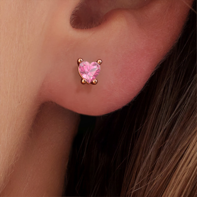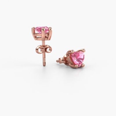 Solitaire earrings are trendy yet fashionable pieces of jewelry. In solitaire earrings, the prong setting is open and only 1 stone is set, which helps reflect light on the gemstone from every angle. Because the pink sapphire are positioned higher, these trendy earrings become truly eye-catching. We carefully create each detail of these solitaire earrings by hand. Our expert goldsmiths set the pink sapphire in these rose gold earrings with the utmost precision, so light reflects evenly from every angle. The earrings are set with 5 mm heart pink sapphire. The Sam Heart earrings are made just for you by our master goldsmith in our own artisan studio.. How do you like these trendy rose gold earrings? Simply customize this Sam Heart earrings, using our online tool. Subsequently, your personal heart Sam Heart earrings will be made by hand by our goldsmiths. Precious metals and gemstones can be customized to your liking. Do you have specific preferences which are unavailable in our online tool? Please feel free to contact us. We will customize your personal trendy earrings to your liking. Because we design and deliver our own earrings, we can offer you earrings at a price you won't find anywhere else. earrings are made to order, which helps prevent excess supplies, so we can make you a great price offer. We understand it feels risky, buying your earrings online, but we will gladly assist in the designing process, taking your budget into consideration. To make it easier for you, we offer a 30 day return policy. Check our terms and conditions.