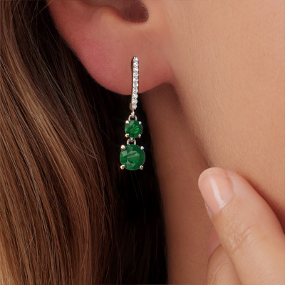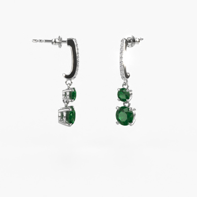 What could possibly be more stunning than a pair of stunning drop earrings? These platinum Tanja 2 drop earrings are a true eye-catcher. These hanging drop earrings are set with round emerald. We collaborate with the best suppliers of gemstones and they select our gemstones with great care. Your drop earrings are made by hand in our own artisan studio by our expert goldsmiths. The best part of these hanging drop earrings is that you can customize it to your own liking. Your style, your choice, your drop earrings. On top of that, your exclusive platinum drop earrings will be made by hand with eco-friendly materials! Please feel free to easily customize the drop earrings, using our online tool.Because we design and deliver our own drop earrings, we can offer you drop earrings at a price you won't find anywhere else. drop earrings are made to order, which helps prevent excess supplies, so we can make you a great price offer. We understand it feels risky, buying your drop earrings online, but we will gladly assist in the designing process, taking your budget into consideration.To make it easier for you, we offer a 30 day return policy. Check our terms and conditions.