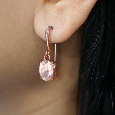 What could possibly be more stunning than a pair of stunning drop earrings? These rose gold Laurie OVL 2 drop earrings are a true eye-catcher. These charming drop earrings are set with oval morganite champagne. We collaborate with the best suppliers of gemstones and they select our gemstones with great care. Your drop earrings are made by hand in our own artisan studio by our expert goldsmiths. Customized chic charming drop earrings are the perfect gift! New exquisite designs are added daily by our team of passionate goldsmiths. And each design can be customized. Simply customize the precious metals and the color of gemstones which will be used, for example. This makes your design of the chic Laurie OVL 2 drop earrings truly unique!After receiving your order, our goldsmiths will passionately start the creative process of making your drop earrings in our own studio. Because we don't have a big stockpile, these costs will not be passed on to you. Our pricing is proof of that! We offer top quality jewels at lowest price, guaranteed.To make it easier for you, we offer a 30 day return policy. Check our terms and conditions.