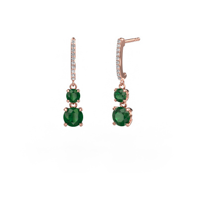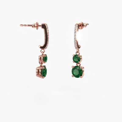 What could possibly be more stunning than a pair of stunning drop earrings? These rose gold Tanja 2 drop earrings are a true eye-catcher. These hanging drop earrings are set with round emerald. We collaborate with the best suppliers of gemstones and they select our gemstones with great care. Your drop earrings are made by hand in our own artisan studio by our expert goldsmiths. The best part of these hanging drop earrings is that you can customize it to your own liking. Your style, your choice, your drop earrings. On top of that, your exclusive rose gold drop earrings will be made by hand with eco-friendly materials! Please feel free to easily customize the drop earrings, using our online tool.Because we design and deliver our own drop earrings, we can offer you drop earrings at a price you won't find anywhere else. drop earrings are made to order, which helps prevent excess supplies, so we can make you a great price offer. We understand it feels risky, buying your drop earrings online, but we will gladly assist in the designing process, taking your budget into consideration.To make it easier for you, we offer a 30 day return policy. Check our terms and conditions.