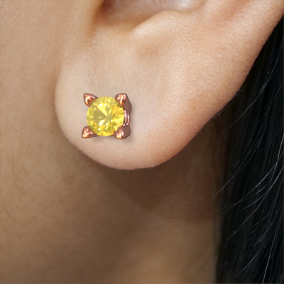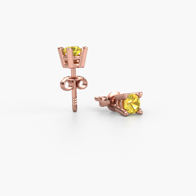 Solitaire stud earrings are both a modern and a trendy piece of jewelry. Solitaire stud earrings have an open prong setting, therefore, light reflects beautifully on the gemstones. Because the yellow sapphire are set high, these modern stud earrings are a stunning eye-catcher. We will create your solitaire stud earrings by hand with the utmost care in our DiamondsByMe studio. For maximum shine, our goldsmith sets the yellow sapphire in the rose gold stud earrings with great care. These solitaire stud earrings are set with round yellow sapphire of 4 mm. De Cather earrings are made to embellish your ears. Each jewel is lovingly made by hand by our goldsmiths.. Customized modern solitaire stud earrings are the perfect gift! New exquisite designs are added daily by our team of passionate goldsmiths. And each design can be customized. Simply customize the precious metals and the color of gemstones which will be used, for example. This makes your design of the modern Cather stud earrings truly unique!By using our modern techniques, we can design and customize the finest quality jewels with the utmost care for you. Our stud earrings are always priced 30 percent lower than other jewelers. We make stud earrings to order so we don't have to maintain a large stock. If you have a certain budget, we are more than happy to advice you accordingly. To make it easier for you, we offer a 30 day return policy. Check our terms and conditions.