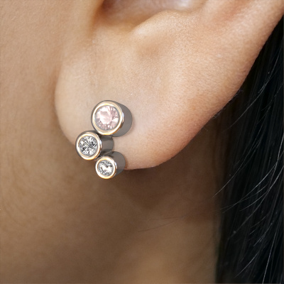 The Marlys stud earrings are set with stunning round morganite champagne. We prefer them set with diamonds. But the best part, is that you get to choose. The Marlys, as shown here, are made of white gold. You are free to choose your gemstones and to customize the stud earrings to your liking. We carefully select each gemstone. We create your stud earrings by hand in our own artisan studio and make use of the latest techniques, combined with ancient craftsmanship. Easily customized to your liking with our online tool. Take these stud earrings set with 2.5 mm morganite champagne, for example. The Marlys earrings are made to embellish your ears. Each jewel is lovingly made by hand by our goldsmiths.