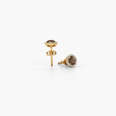 The Seline rnd earrings are set with stunning round smokey quartz. We prefer them set with diamonds. But the best part, is that you get to choose. The Seline rnd, as shown here, are made of gold. You are free to choose your gemstones and to customize the earrings to your liking. We carefully select each gemstone. We create your earrings by hand in our own artisan studio and make use of the latest techniques, combined with ancient craftsmanship. Easily customized to your liking with our online tool. Take these earrings set with 4 mm smokey quartz, for example. The Seline rnd earrings are passionately made by one of our master goldsmiths.Are you on a budget? Please feel free to contact us, so we can go discuss your options. We offer our earrings at guaranteed best price, because we make them to order. You won't find such a price anywhere else!To make it easier for you, we offer a 30 day return policy. Check our terms and conditions.