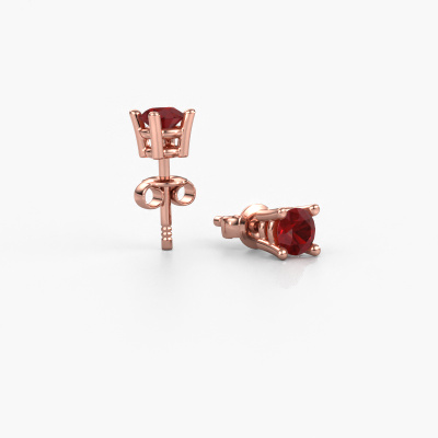 Solitaire stud earrings are classic yet fashionable pieces of jewelry. In solitaire stud earrings, the prong setting is open and only 1 stone is set, which helps reflect light on the gemstone from every angle. Because the ruby are positioned higher, these classic stud earrings become truly eye-catching. We carefully create each detail of these solitaire stud earrings by hand. Our expert goldsmiths set the ruby in these rose gold stud earrings with the utmost precision, so light reflects evenly from every angle. The stud earrings are set with 4 mm round ruby. The Jannette earrings are unique pieces of jewelry because they can be customized to your liking.. What could possibly be more beautiful than personally designed classic stud earrings, handmade by yours truly? Please, feel free to customize each model by choosing different precious metals and gemstones. This makes your stud earrings truly unique. These stud earrings can be customized to your liking. It goes without saying that you can also ask us for help. We are more than willing to assist in designing your classic stud earrings. If you like but still have specific wishes concerning customizing your design, such as adding a gemstone which isn't mentioned in the list, feel free to contact us. We will gladly inform you on different options. By using a combination of the latest modern techniques, combined with ancient crafting, we can make all our stud earrings in our own studio. Each jewel is made to order. This is advantageous because we can offer you a price you won't find anywhere else. To make it easier for you, we offer a 30 day return policy. Check our terms and conditions.