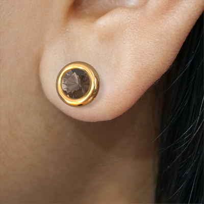 The round gold Lieke RND stud earrings are set with stunning round smokey quartz. These stud earrings are ideally combined with colored gemstones, but if you prefer other gemstones, feel free to choose from our collection. Our expert jewelers would love to create handmade stud earrings for you in our own crafting studio. We use a unique concept, a perfect combination of ancient craftsmanship and the latest modern techniques. This enables us to design your stud earrings to perfection. The stud earrings, as shown here, are set with smokey quartz 4 mm. How do you like these modern gold stud earrings? Simply customize this Lieke RND stud earrings, using our online tool. Subsequently, your personal round Lieke RND stud earrings will be made by hand by our goldsmiths. Precious metals and gemstones can be customized to your liking. Do you have specific preferences which are unavailable in our online tool? Please feel free to contact us. We will customize your personal modern stud earrings to your liking.De Lieke RND earrings are made just for you by our master goldsmith in our own artisan studio.Because we design and deliver our own stud earrings, we can offer you stud earrings at a price you won't find anywhere else. stud earrings are made to order, which helps prevent excess supplies, so we can make you a great price offer. We understand it feels risky, buying your stud earrings online, but we will gladly assist in the designing process, taking your budget into consideration.To make it easier for you, we offer a 30 day return policy. Check our terms and conditions.