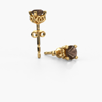 The solitaire gold Ize earrings are set with stunning round smokey quartz. These earrings are ideally combined with colored gemstones, but if you prefer other gemstones, feel free to choose from our collection. Our expert jewelers would love to create handmade earrings for you in our own crafting studio. We use a unique concept, a perfect combination of ancient craftsmanship and the latest modern techniques. This enables us to design your earrings to perfection. The earrings, as shown here, are set with smokey quartz 5 mm. The best part of these solitaire earrings is that you can customize it to your own liking. Your style, your choice, your earrings. On top of that, your vintage gold earrings will be made by hand with eco-friendly materials! Please feel free to easily customize the earrings, using our online tool.De Ize earrings are made just for you by our master goldsmith in our own artisan studio.Are you on a budget? Please feel free to contact us, so we can go discuss your options. We offer our earrings at guaranteed best price, because we make them to order. You won't find such a price anywhere else!To make it easier for you, we offer a 30 day return policy. Check our terms and conditions.