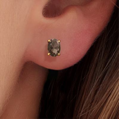 Solitaire stud earrings are contemporary yet fashionable pieces of jewelry. In solitaire stud earrings, the prong setting is open and only 1 stone is set, which helps reflect light on the gemstone from every angle. Because the smokey quartz are positioned higher, these contemporary stud earrings become truly eye-catching. We carefully create each detail of these solitaire stud earrings by hand. Our expert goldsmiths set the smokey quartz in these gold stud earrings with the utmost precision, so light reflects evenly from every angle. The stud earrings are set with 7x5 mm oval smokey quartz. The Sam OVL earrings are made just for you by our master goldsmith in our own artisan studio.. As soon as you finished designing your contemporary stud earrings with our online tool, our goldsmiths will start their creative process of making your stud earrings. This will be done with passion and care, according ancient crafting. On top of that, our jewels are made of eco-friendly materials. If you want specific changes made to your Sam OVL stud earrings, that are unavailable in our online tool, please feel free to contact our expert designers. After receiving your order, our goldsmiths will passionately start the creative process of making your stud earrings in our own studio. Because we don't have a big stockpile, these costs will not be passed on to you. Our pricing is proof of that! We offer top quality jewels at lowest price, guaranteed. To make it easier for you, we offer a 30 day return policy. Check our terms and conditions.