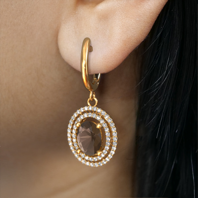 With a pair of exclusive drop earrings, every woman truly stands out. At DiamondsByMe, we create luxury and extraordinary jewelry and we make use of the finest precious metals and gemstones. These exclusive gold drop earrings are a true work of art! Each tiny detail has been made with patience and passion by our expert jeweler. This requires a keen eye and skillful hand in order for the ring to be carefully created to perfection. And this is exactly what our expert jewelers strive for, perfection! The exquisite smokey quartz are set in a way making them seem to shine even brighter. This gives the drop earrings an extra glamorous look. Shown above are our gold Karren drop earrings, set with oval smokey quartz. The Karren [extra2_long]. Customized luxury special drop earrings are the perfect gift! New exquisite designs are added daily by our team of passionate goldsmiths. And each design can be customized. Simply customize the precious metals and the color of gemstones which will be used, for example. This makes your design of the luxury Karren drop earrings truly unique! After receiving your order, our goldsmiths will passionately start the creative process of making your drop earrings in our own studio. Because we don't have a big stockpile, these costs will not be passed on to you. Our pricing is proof of that! We offer top quality jewels at lowest price, guaranteed. To make it easier for you, we offer a 30 day return policy. Check our terms and conditions.
