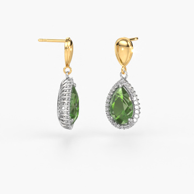 With a pair of exclusive drop earrings, every woman truly stands out. At DiamondsByMe, we create exclusive and extraordinary jewelry and we make use of the finest precious metals and gemstones. These exclusive white gold drop earrings are a true work of art! Each tiny detail has been made with patience and passion by our expert jeweler. This requires a keen eye and skillful hand in order for the ring to be carefully created to perfection. And this is exactly what our expert jewelers strive for, perfection! The exquisite tourmaline green are set in a way making them seem to shine even brighter. This gives the drop earrings an extra glamorous look. Shown above are our white gold Tilly per 1 drop earrings, set with pear tourmaline green. The Tilly per 1 earrings are made just for you by our master goldsmith in our own artisan studio.. As soon as you finished designing your exclusive drop earrings with our online tool, our goldsmiths will start their creative process of making your drop earrings. This will be done with passion and care, according ancient crafting. On top of that, our jewels are made of eco-friendly materials. If you want specific changes made to your Tilly per 1 drop earrings, that are unavailable in our online tool, please feel free to contact our expert designers. Because we design and deliver our own drop earrings, we can offer you drop earrings at a price you won't find anywhere else. drop earrings are made to order, which helps prevent excess supplies, so we can make you a great price offer. We understand it feels risky, buying your drop earrings online, but we will gladly assist in the designing process, taking your budget into consideration. To make it easier for you, we offer a 30 day return policy. Check our terms and conditions.