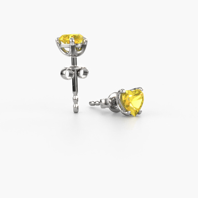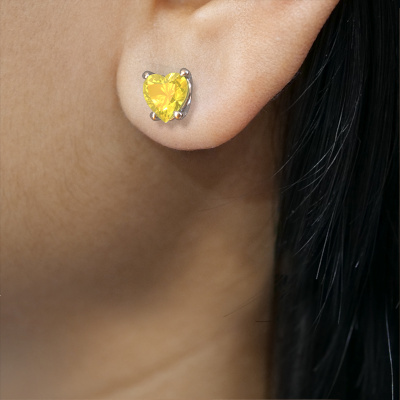 Solitaire earrings are trendy yet fashionable pieces of jewelry. In solitaire earrings, the prong setting is open and only 1 stone is set, which helps reflect light on the gemstone from every angle. Because the yellow sapphire are positioned higher, these trendy earrings become truly eye-catching. We carefully create each detail of these solitaire earrings by hand. Our expert goldsmiths set the yellow sapphire in these platinum earrings with the utmost precision, so light reflects evenly from every angle. The earrings are set with 5 mm heart yellow sapphire. The Sam Heart earrings are made just for you by our master goldsmith in our own artisan studio.. How do you like these trendy platinum earrings? Simply customize this Sam Heart earrings, using our online tool. Subsequently, your personal heart Sam Heart earrings will be made by hand by our goldsmiths. Precious metals and gemstones can be customized to your liking. Do you have specific preferences which are unavailable in our online tool? Please feel free to contact us. We will customize your personal trendy earrings to your liking. Because we design and deliver our own earrings, we can offer you earrings at a price you won't find anywhere else. earrings are made to order, which helps prevent excess supplies, so we can make you a great price offer. We understand it feels risky, buying your earrings online, but we will gladly assist in the designing process, taking your budget into consideration. To make it easier for you, we offer a 30 day return policy. Check our terms and conditions.