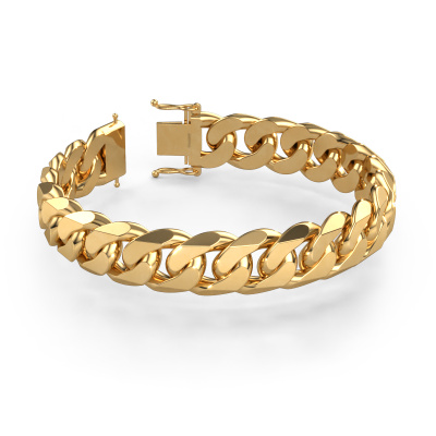 Cuban link bracelets are not only the new trend in fashion, but also the real hip-hopper likes to be seen with them, it is nice to see how these two cultures go together in fashion. This striking link bracelet is a straight hit from America. The link itself is very old but now it is making a new march. Another name for this bracelet is also called the cuban Miami bracelet or in the Netherlands the gourmet bracelet. This hollow executed bracelet with a width of ±0.6 in (15 mm) and a thickness of ±4.3 mm is made of 585 gold. The link style is oval, we have multiple styles of cuban link bracelets on the site. Through the configurator on the left side of this page you can choose your gold color or alloy gold such as 9 crt, 14 crt and 18 crt. All bracelets are available in hollow and solid. Because we produce all jewelry ourselves, we can guarantee you the best price for your Cuban 3CUTH 15.0mm link bracelet. All jewelry on our site is designed and produced by our own designers. Do you want something different with your cuban bracelet, please let us know! We love nothing more than working with you to design the ultimate bracelet. Would you like to add your own logo or tag or have 1 or more links set full of diamonds? That's no problem at all. We like to think along with you.Because we design and deliver our own cuban link bracelets, we can offer you a cuban link bracelet at a price you won't find anywhere else. A cuban link bracelet is made to order, which helps prevent excess supplies, so we can make you a great price offer. We understand it feels risky, buying your cuban link bracelet online, but we will gladly assist in the designing process, taking your budget into consideration.To make it easier for you, we offer a 30 day return policy. Check our terms and conditions.