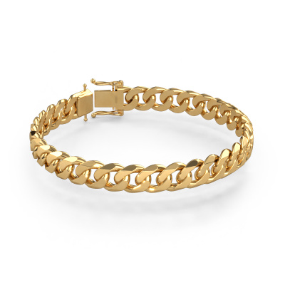 Affordable gold Cuban link bracelet! These bracelets are a real hit in the U.S. and are slowly but surely making their way to Europe. This plane Cuban link bracelet has a hollow design, with a width of around ±0.39 in (10 mm) and a thickness of around ±2.6 mm. The weight can be found in the details section. Our collection of Cuban bracelets consists of four different styles and sizes, all of which have a massive and hollow design. The bracelet is also available full of diamonds, or as we call it: \iced\. In the Netherlands, the bracelet is sometimes also called a gourmet bracelet and, in the U.S., a Cuban Miami bracelet. New bracelet designs are added to the website daily by our team of talented and passionate designers. Our ultimate goal is to offer as varied a collection as possible to our fans. If you have a special request for your bracelet, such as one link in a different color or one or more links with a diamond or, even more unique, a special logo or tag incorporated into the bracelet, contact us. We would be more than happy to help you come up with a way to make your bracelet extra special. We'll make you an offer in terms of price and quality that you won't be able to refuse!By using a combination of the latest modern techniques, combined with ancient crafting, we can make all our cuban link bracelets in our own studio. Each jewel is made to order. This is advantageous because we can offer you a price you won't find anywhere else.To make it easier for you, we offer a 30 day return policy. Check our terms and conditions.