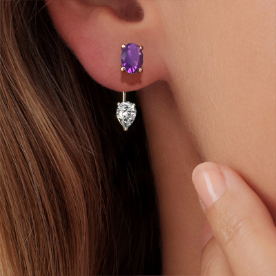 How would you describe your style? Are you looking for something slightly different? These exclusive hanging platinum drop earrings are unique and created by our expert goldsmiths. These exclusive drop earrings are set with amethyst. Each of the amethysten is carefully selected, because we believe your drop earrings should be adorned with nothing but the most exquisite gemstones. Wouldn't you agree? The Kate OVL-PER earrings are unique pieces of jewelry because they can be customized to your liking.. Customized exclusive hanging drop earrings are the perfect gift! New exquisite designs are added daily by our team of passionate goldsmiths. And each design can be customized. Simply customize the precious metals and the color of gemstones which will be used, for example. This makes your design of the exclusive Kate OVL-PER drop earrings truly unique!By using our modern techniques, we can design and customize the finest quality jewels with the utmost care for you. Our drop earrings are always priced 30 percent lower than other jewelers. We make drop earrings to order so we don't have to maintain a large stock. If you have a certain budget, we are more than happy to advice you accordingly. To make it easier for you, we offer a 30 day return policy. Check our terms and conditions.