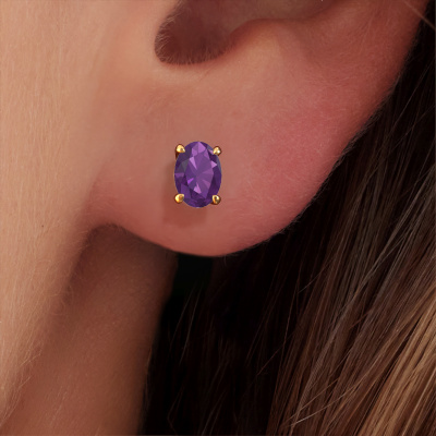 Solitaire stud earrings are contemporary yet fashionable pieces of jewelry. In solitaire stud earrings, the prong setting is open and only 1 stone is set, which helps reflect light on the gemstone from every angle. Because the amethysten are positioned higher, these contemporary stud earrings become truly eye-catching. We carefully create each detail of these solitaire stud earrings by hand. Our expert goldsmiths set the amethysten in these gold stud earrings with the utmost precision, so light reflects evenly from every angle. The stud earrings are set with 7x5 mm oval amethysten. The Sam OVL earrings are made just for you by our master goldsmith in our own artisan studio.. As soon as you finished designing your contemporary stud earrings with our online tool, our goldsmiths will start their creative process of making your stud earrings. This will be done with passion and care, according ancient crafting. On top of that, our jewels are made of eco-friendly materials. If you want specific changes made to your Sam OVL stud earrings, that are unavailable in our online tool, please feel free to contact our expert designers. After receiving your order, our goldsmiths will passionately start the creative process of making your stud earrings in our own studio. Because we don't have a big stockpile, these costs will not be passed on to you. Our pricing is proof of that! We offer top quality jewels at lowest price, guaranteed. To make it easier for you, we offer a 30 day return policy. Check our terms and conditions.