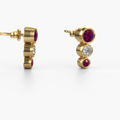We believe this set of charming Linda stud earrings, set with exquisite round rhodolite, look best when set with diamonds. But the best part is that you get to choose your own birthstones to customize the modern Linda gold stud earrings to your liking. In the example shown above they are set with rhodolite 4 mm. Each gemstone is selected with great care and the utmost precision for a maximum shine. After receiving your order, our goldsmiths will passionately start the creative process of making your stud earrings in our own studio. Because we don't have a big stockpile, these costs will not be passed on to you. Our pricing is proof of that! We offer top quality jewels at lowest price, guaranteed.To make it easier for you, we offer a 30 day return policy. Check our terms and conditions.