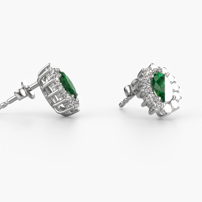 If you are looking for classic and personal earrings, then these will fit you perfectly. You have the option to add your birthstones to these earrings. Each month has its own birthstone. You may use your own birthstone gemstone or that of your children. A priceless gift, even if it is for yourself. Our expert jeweler will set the selected stones in your earrings with utter precision, so light reflects evenly from every angle. Here, 6x4 mm oval emeralds gemstones were used to adorn these white gold cluster Margien earrings. The Margien earrings are unique pieces of jewelry because they can be customized to your liking.. The best part of these cluster earrings is that you can customize it to your own liking. Your style, your choice, your earrings. On top of that, your classic white gold earrings will be made by hand with eco-friendly materials! Please feel free to easily customize the earrings, using our online tool. Are you on a budget? Please feel free to contact us, so we can go discuss your options. We offer our earrings at guaranteed best price, because we make them to order. You won't find such a price anywhere else!To make it easier for you, we offer a 30 day return policy. Check our terms and conditions.