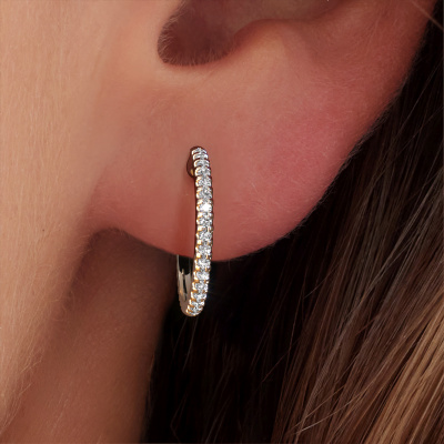 This set of best prices Jackie 15 mm A hoop earrings are beautiful small hoop earrings to finish off your look. Our expert jewelers combine the latest techniques with ancient craftsmanship. They make your hoop earrings by hand in our own crafting studio. The cz-stones of your choosing are set in your hoop earrings with the utmost precision, so light reflects evenly from every angle. In the end you get stunning, unique hoop earrings that match your own style perfectly! Take these platinum hoop earrings set with zirconia 1.2 mm, for example. Our goldsmiths passionately create your customized hoop earrings to your liking with the utmost care. The platinum set hoop earrings, as shown here, can be customized using our online tool. Feel free to ask our jewel designers for assistance if you want changes made which are unavailable in our online tool. We are happy to answer your questions.The Jackie 15 mm A made just for you, with great attention to detail and design.Are you on a budget? Please feel free to contact us, so we can go discuss your options. We offer our hoop earrings at guaranteed best price, because we make them to order. You won't find such a price anywhere else!To make it easier for you, we offer a 30 day return policy. Check our terms and conditions.
