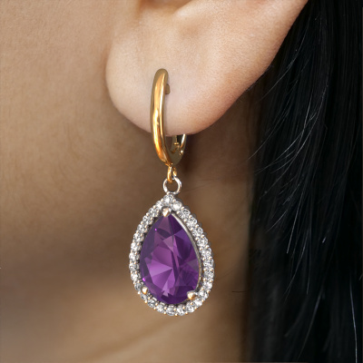 With a pair of exclusive drop earrings, every woman truly stands out. At DiamondsByMe, we create exclusive and extraordinary jewelry and we make use of the finest precious metals and gemstones. These exclusive white gold drop earrings are a true work of art! Each tiny detail has been made with patience and passion by our expert jeweler. This requires a keen eye and skillful hand in order for the ring to be carefully created to perfection. And this is exactly what our expert jewelers strive for, perfection! The exquisite amethysten are set in a way making them seem to shine even brighter. This gives the drop earrings an extra glamorous look. Shown above are our white gold Tilly per 3 drop earrings, set with pear amethyst. The Tilly per 3 earrings are made just for you by our master goldsmith in our own artisan studio.. The best part of these drop drop earrings is that you can customize it to your own liking. Your style, your choice, your drop earrings. On top of that, your exclusive white gold drop earrings will be made by hand with eco-friendly materials! Please feel free to easily customize the drop earrings, using our online tool. Because we design and deliver our own drop earrings, we can offer you drop earrings at a price you won't find anywhere else. drop earrings are made to order, which helps prevent excess supplies, so we can make you a great price offer. We understand it feels risky, buying your drop earrings online, but we will gladly assist in the designing process, taking your budget into consideration. To make it easier for you, we offer a 30 day return policy. Check our terms and conditions.