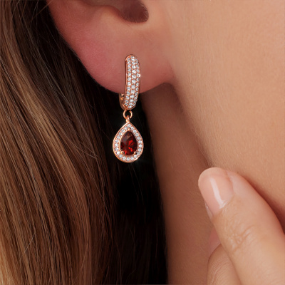 With a pair of exclusive drop earrings, every woman truly stands out. At DiamondsByMe, we create exclusive and extraordinary jewelry and we make use of the finest precious metals and gemstones. These exclusive rose gold drop earrings are a true work of art! Each tiny detail has been made with patience and passion by our expert jeweler. This requires a keen eye and skillful hand in order for the ring to be carefully created to perfection. And this is exactly what our expert jewelers strive for, perfection! The exquisite garnet are set in a way making them seem to shine even brighter. This gives the drop earrings an extra glamorous look. Shown above are our rose gold Barbar 2 drop earrings, set with pear garnet. The Barbar 2 earrings are made by a team of passionate goldsmiths and designers. This will make your unique crown jewel eye-catching.. How do you like these exclusive rose gold drop earrings? Simply customize this Barbar 2 drop earrings, using our online tool. Subsequently, your personal drop Barbar 2 drop earrings will be made by hand by our goldsmiths. Precious metals and gemstones can be customized to your liking. Do you have specific preferences which are unavailable in our online tool? Please feel free to contact us. We will customize your personal exclusive drop earrings to your liking. After receiving your order, our goldsmiths will start the creative process of making your Barbar 2 drop earrings. We don't keep stock. This is advantageous because these costs will not be passed on to you. Therefore, we can offer jewelry at exceptionally low prices. To make it easier for you, we offer a 30 day return policy. Check our terms and conditions.