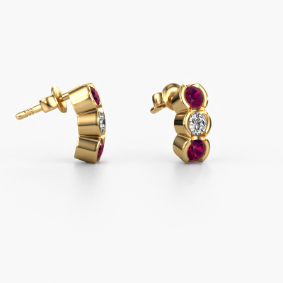 How would you describe your style? Are you looking for something slightly different? These trendy elegant gold earrings are unique and created by our expert goldsmiths. These trendy earrings are set with rhodolite. Each of the rhodolite is carefully selected, because we believe your earrings should be adorned with nothing but the most exquisite gemstones. Wouldn't you agree? The Lotte made just for you, with great attention to detail and design.. Our goldsmiths passionately create your customized earrings to your liking with the utmost care. The gold set earrings, as shown here, can be customized using our online tool. Feel free to ask our jewel designers for assistance if you want changes made which are unavailable in our online tool. We are happy to answer your questions.By using a combination of the latest modern techniques, combined with ancient crafting, we can make all our earrings in our own studio. Each jewel is made to order. This is advantageous because we can offer you a price you won't find anywhere else. To make it easier for you, we offer a 30 day return policy. Check our terms and conditions.
