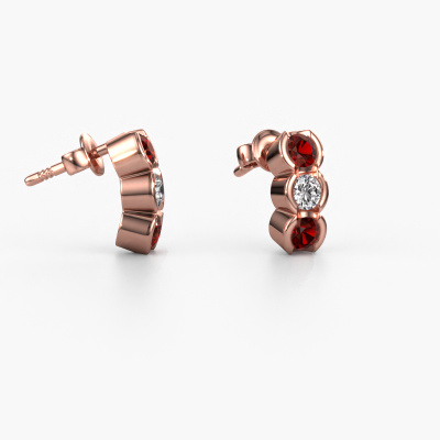 How would you describe your style? Are you looking for something slightly different? These trendy elegant rose gold earrings are unique and created by our expert goldsmiths. These trendy earrings are set with garnet. Each of the garnet is carefully selected, because we believe your earrings should be adorned with nothing but the most exquisite gemstones. Wouldn't you agree? The Lotte made just for you, with great attention to detail and design.. Our goldsmiths passionately create your customized earrings to your liking with the utmost care. The rose gold set earrings, as shown here, can be customized using our online tool. Feel free to ask our jewel designers for assistance if you want changes made which are unavailable in our online tool. We are happy to answer your questions.By using a combination of the latest modern techniques, combined with ancient crafting, we can make all our earrings in our own studio. Each jewel is made to order. This is advantageous because we can offer you a price you won't find anywhere else. To make it easier for you, we offer a 30 day return policy. Check our terms and conditions.