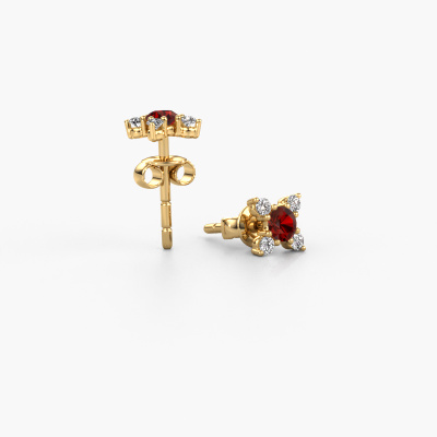 The charming gold Nina earrings are set with stunning round garnet. These earrings are ideally combined with colored gemstones, but if you prefer other gemstones, feel free to choose from our collection. Our expert jewelers would love to create handmade earrings for you in our own crafting studio. We use a unique concept, a perfect combination of ancient craftsmanship and the latest modern techniques. This enables us to design your earrings to perfection. The earrings, as shown here, are set with garnet 3 mm. Customized fantasy charming earrings are the perfect gift! New exquisite designs are added daily by our team of passionate goldsmiths. And each design can be customized. Simply customize the precious metals and the color of gemstones which will be used, for example. This makes your design of the fantasy Nina earrings truly unique!De Nina earrings are made to embellish your ears. Each jewel is lovingly made by hand by our goldsmiths.Because we design and deliver our own earrings, we can offer you earrings at a price you won't find anywhere else. earrings are made to order, which helps prevent excess supplies, so we can make you a great price offer. We understand it feels risky, buying your earrings online, but we will gladly assist in the designing process, taking your budget into consideration.To make it easier for you, we offer a 30 day return policy. Check our terms and conditions.